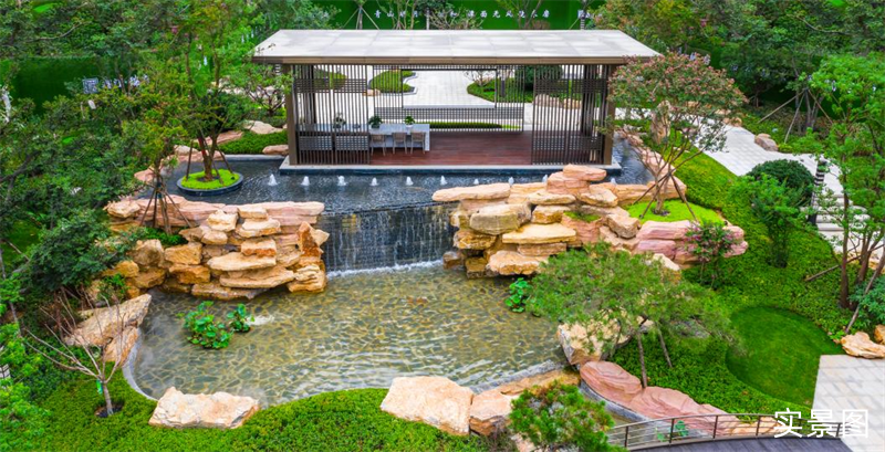 众所周知,鑫江集团擅长造园,每一部作品都是鑫派园林的得意呈现。鑫江·瑞府,总占地约8万平,绿地率达到约40%,也就是说超过1/3的空间都用来打造园林。整个园区寻迹诗人王维《辋川图》之山水相依妙理,以“一轴一脉三苑六巷七园”的设计布局,打造鑫江·瑞府二十景。走进其间,华子冈、卧虹桥、东峰秀色、白石滩等独特景致铺陈开来,在山泉--石滩--清溪--叠瀑--歆湖等丰富的水景映衬下,诠释真正的青绿之美。另外还有乌桕、紫薇、泰山松等多种名贵苗木分布其中,让人亲近自然。这里就像是一个桃源仙境,置身于此,仿佛缓慢的生活节奏包容着所有疲惫和焦虑;目之所及,层绿皆染。