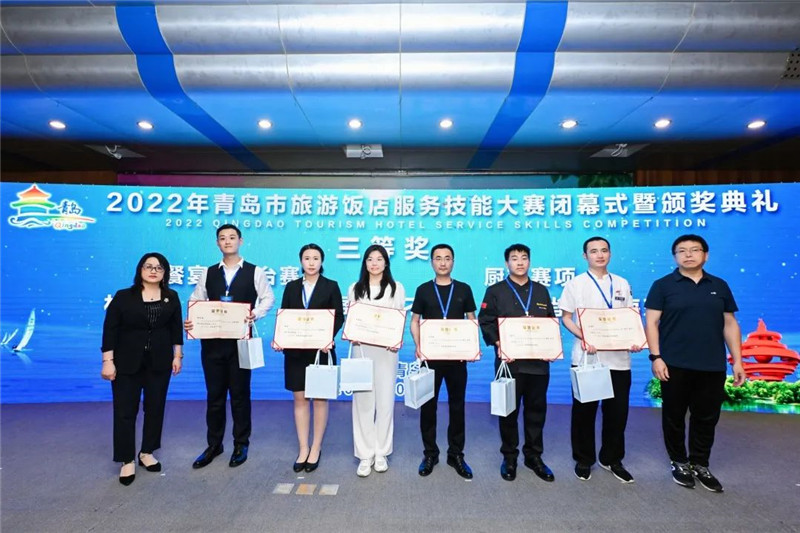 6月29日,由青岛市文化和旅游局、市人力资源社会保障局等五部门共同举办的青岛市旅游饭店服务技能大赛,于青岛酒店管理职业技术学院圆满闭幕。本次比赛有近40家旅游饭店,130多名选手,分别参加中餐宴会摆台、西餐摆台、中式铺床、前厅接待、厨艺、面点六个项目的角逐。