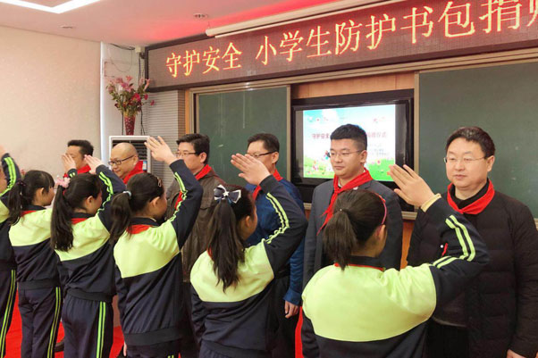随后,中国红十字基金会,学生安全防护书包项目负责人,孙浅先生,向孩子们耐心的讲解了安全防护书包的功能及使用方法。据悉,安全防护书包,采用全功统一的环保材料制作而成,环保健康;书包表面,使用360°交通反光材料进行处理,不管是在清晨、傍晚还是有雾的天气,反光材料都能有效地反射来自孩子周围车辆发出的光线,提醒司机,注意避让,以保证孩子的安全;书包夹层内还进行了防溺水处理,经漂浮测试,书包可在水中承担起一个成人的体重;同时,书包内更做了安全示警装置,必要情况,孩子可通过使用哨子,发出求救信号,提醒周围人注意。这些功能的设计,有效的保证了孩子上下学路上的安全。