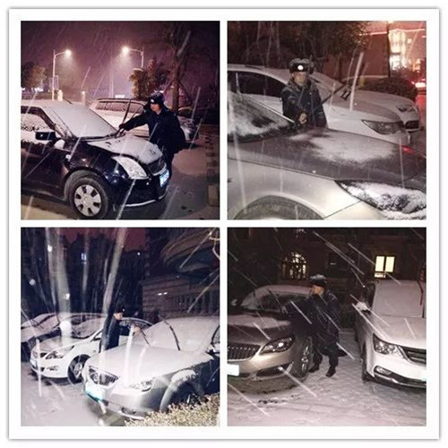 顶着风雪,为业主立起汽车的雨刷;
