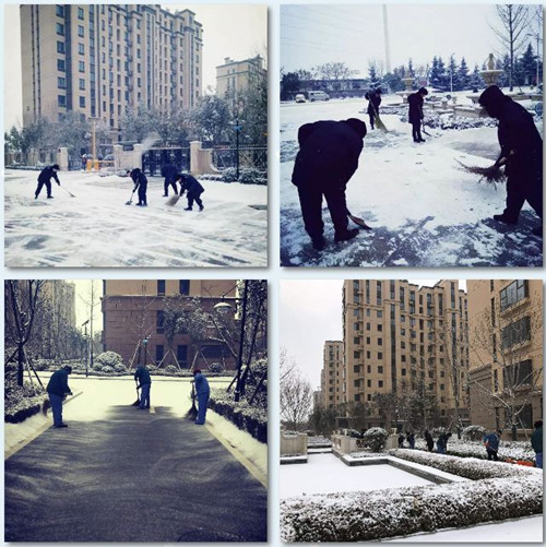 当您吃过早餐暖暖出门的时候,当您欣赏朋友圈里美丽雪景的时候,有一群人已经默默来到了工作岗位上,他们在漫天飞雪中忙碌,只为让业主在雪天安全出行,防止因大雪路滑带来的各种安全隐患。
