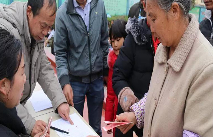 贫困生家长领取青岛鑫江慈善基金会贫困生助学金