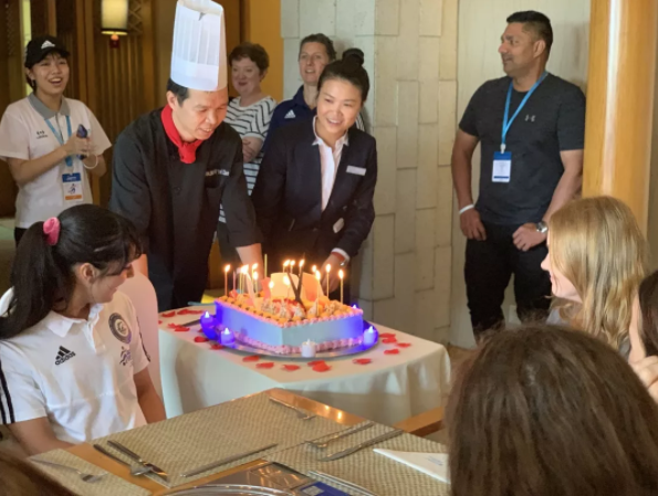 入住期间有一位小队员过生日,酒店工作人员为她唱了生日歌,给予了美好的生日祝福,令她特别感动。球队领队特意写了感谢信表示感谢。