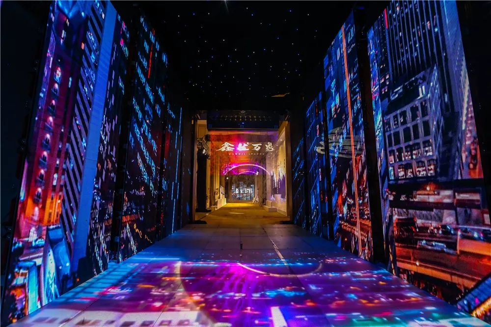 舞台造景上,鑫江集团通过声音、香氛、灯光与影像的交错配合,打造亦真亦幻的多维立体效果,让来宾沉浸在美轮美奂的光影盛景中。