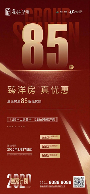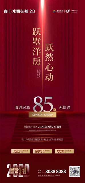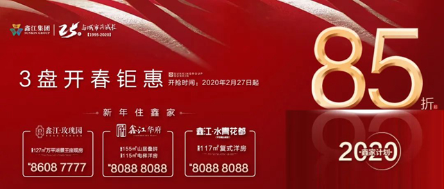 2月27日,鑫江集团隆重推出“2020鑫家计划”,电梯洋房、山居叠拼、瞰景小高层等多样精品住宅85折优惠让利,这是继恒大之后,给青岛楼市的最大一份“礼包”,引人瞩目!