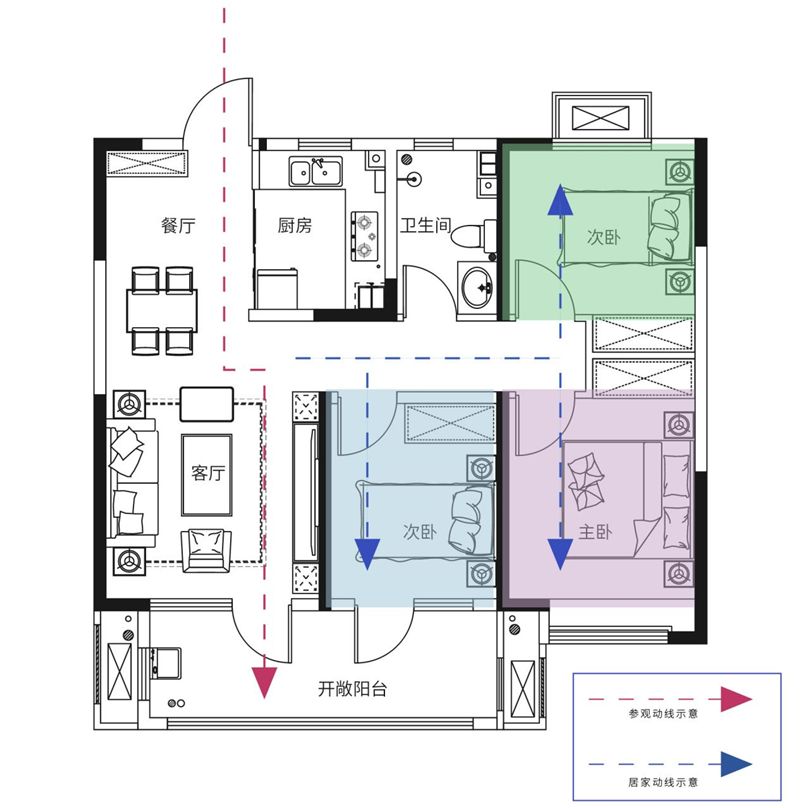 建面约92㎡功能三居H3户型 盛妆绽放