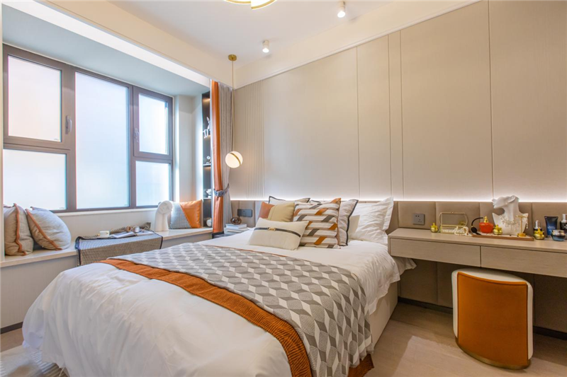 属于主人房的私密浪漫中,空间是奇妙的催化剂,南侧宽景飘窗,升级视觉维度与空间质感,午后小憩、阅读瞰景,自此就有了专属的一席,女主人专属衣饰区,满足自我的时尚与仓储,随心而居,时光静好,勾勒理想生活的模样。