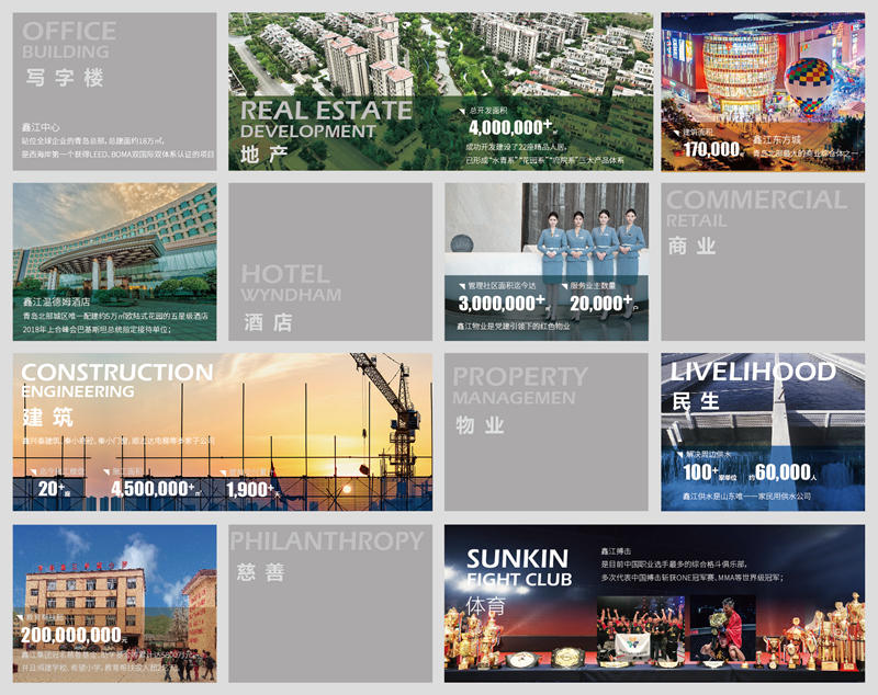 鑫江集团成立于1995年,以助力城市综合发展、提升高质量美好生活品质为企业己任,是一家集地产、写字楼、商业、酒店、物业、建筑、体育、民生、慈善于一体的多元化集团企业,2018年企业销售值突破101亿元,纳税7.03亿元。鑫江集团坚持高质量发展,勇于创新、整合业态资源,深度参与城市发展,为城市综合发展赋能,不断探索市民对美好生活的追求,全面筑就城市发展综合运营商的新格局,与岛城市民共建美好鑫生活。